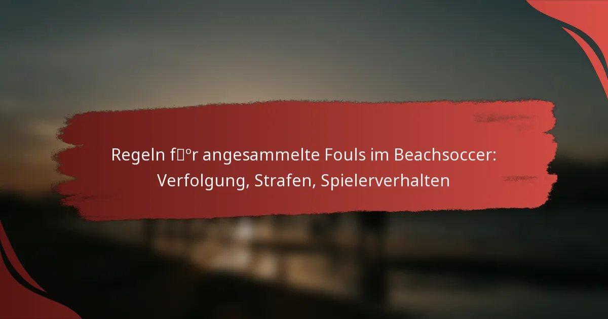 Ansammelte Fouls im Beachsoccer spielen eine entscheidende Rolle in der Dynamik des Spiels, da sie zu Strafen führen können, die das Ergebnis beeinflussen. Eine ordnungsgemäße Verfolgung dieser Fouls, die von Schiedsrichtern und Zeitnehmern durchgeführt wird, ist unerlässlich, um Fair Play zu gewährleisten und das Verhalten der Spieler aufrechtzuerhalten. Die Teams müssen wachsam sein, um ihre Fouls zu verwalten und schwere Strafen, einschließlich Freistößen und möglichen Spielerentlassungen, zu vermeiden.