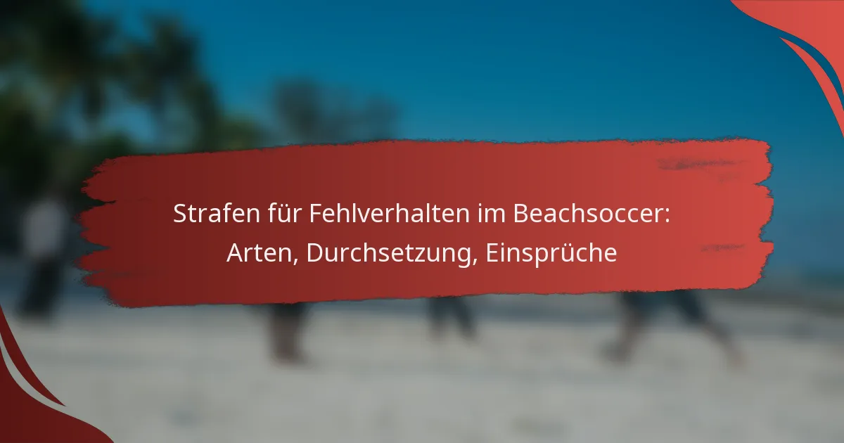Disziplinarmaßnahmen im Beachsoccer werden von Schiedsrichtern durchgesetzt, die die Autorität haben, verschiedene Strafen basierend auf dem Verhalten der Spieler zu verhängen. Diese Strafen können das Spiel erheblich beeinflussen, und es müssen ordnungsgemäße Verfahren für die Dokumentation und Meldung von Fehlverhalten eingehalten werden.